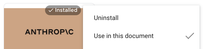 - Click on the triple dot menu at the top right corner of the Claude for Sheets extension and make sure “Use in this document” is checked